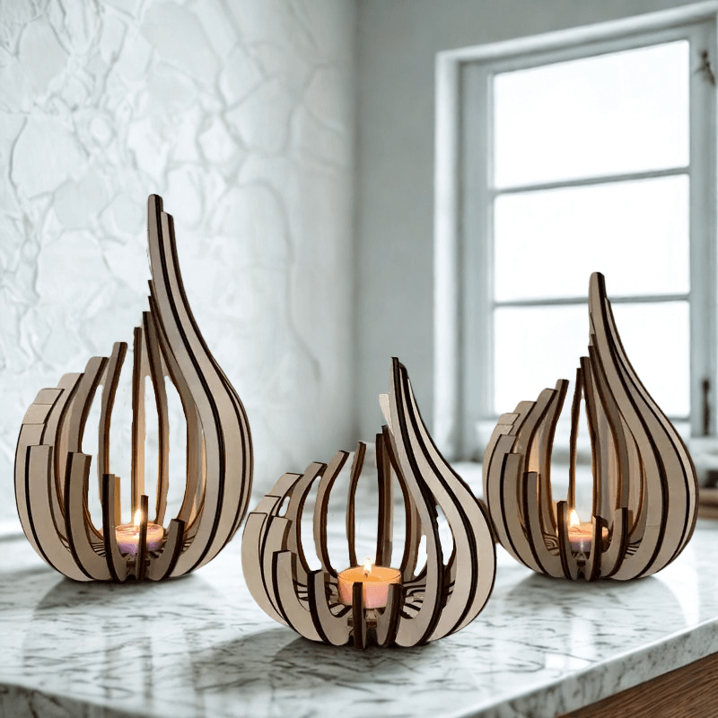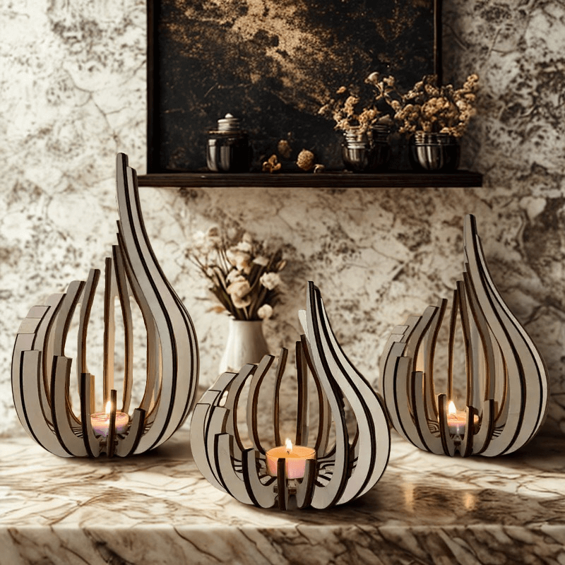Elegantni svijećnjak – drveni ukras za stol, 3 kom.