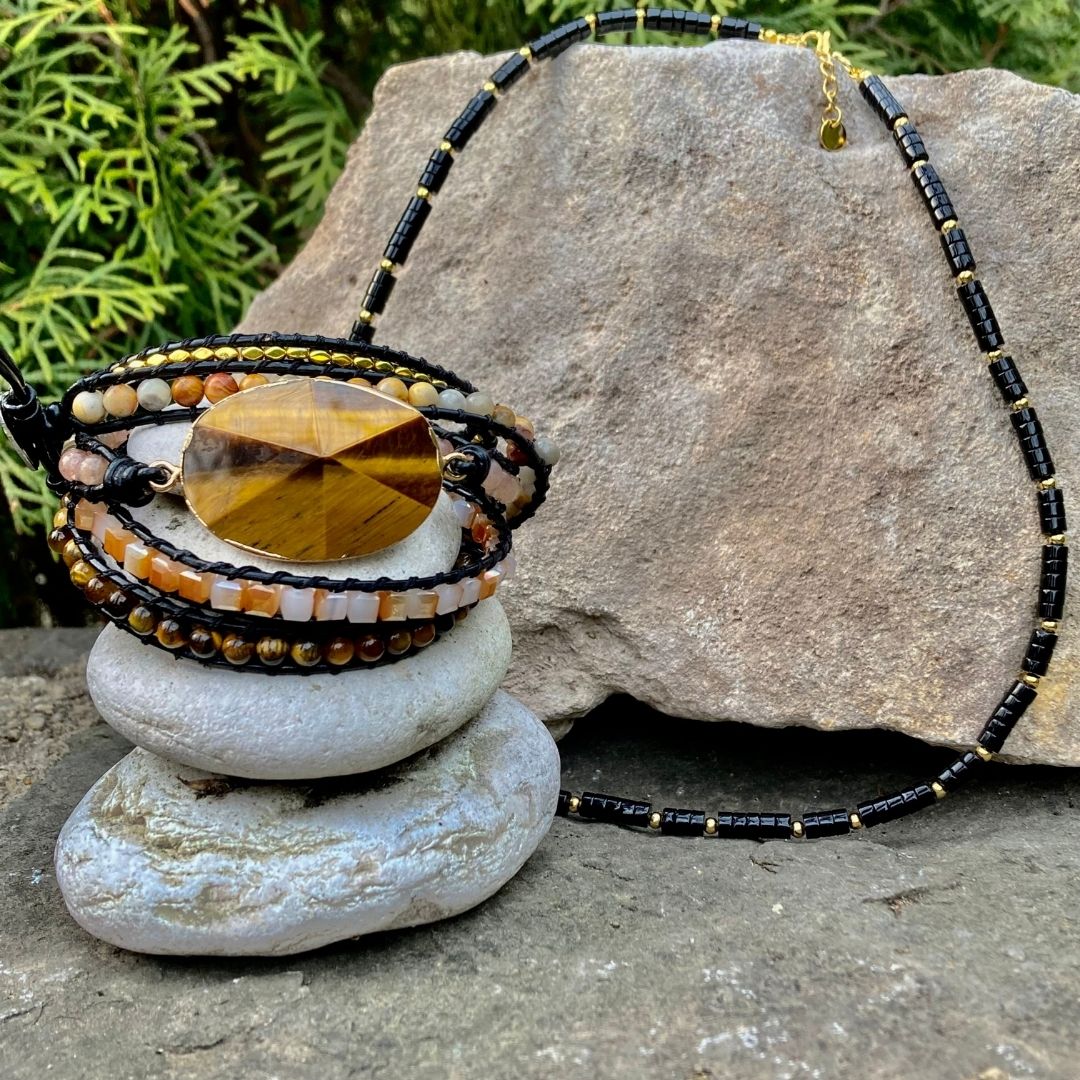 Nyugalom szett tartalma Tigrisszem karkötő és Ónix nyaklánc.