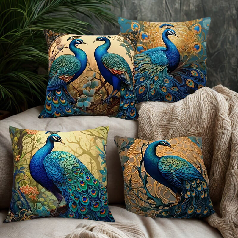 Retro set jastučnica s uzorkom pauna, 4 dijela